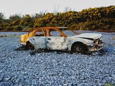 Kilka starych zdjęć zrobionych w Irlandii w marcu 2011 roku, czyli prawie 15 lat temu. Tak, na prawdę nie wiem, dlaczego ktoś spalił ten samochód, ale oczywiście wyobraźnia zawsze podpowiada najciekawsze scenariusze. I nie ma potrzeby, żeby było inaczej.